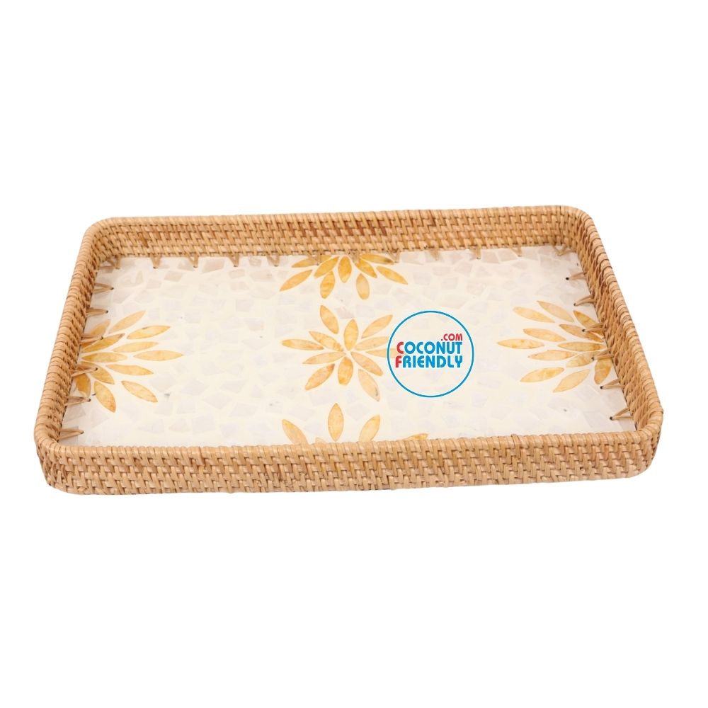 Elegant Rectangular Mother of Pearl Rattan Tray For Table Organization – TCRMT 8899C