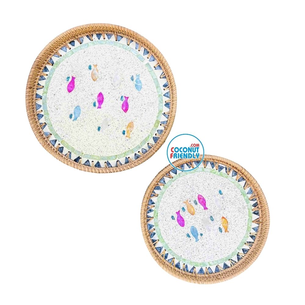 Harmonious Round Mother of Pearl Rattan Tray With Soft Visual Flow – TCRMT 8903C