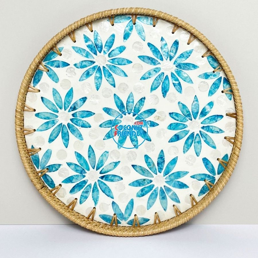 | Product Name: | Clean Style Round Mother of Pearl Rattan Tray With Simple Geometry - TCRMT 8881C |