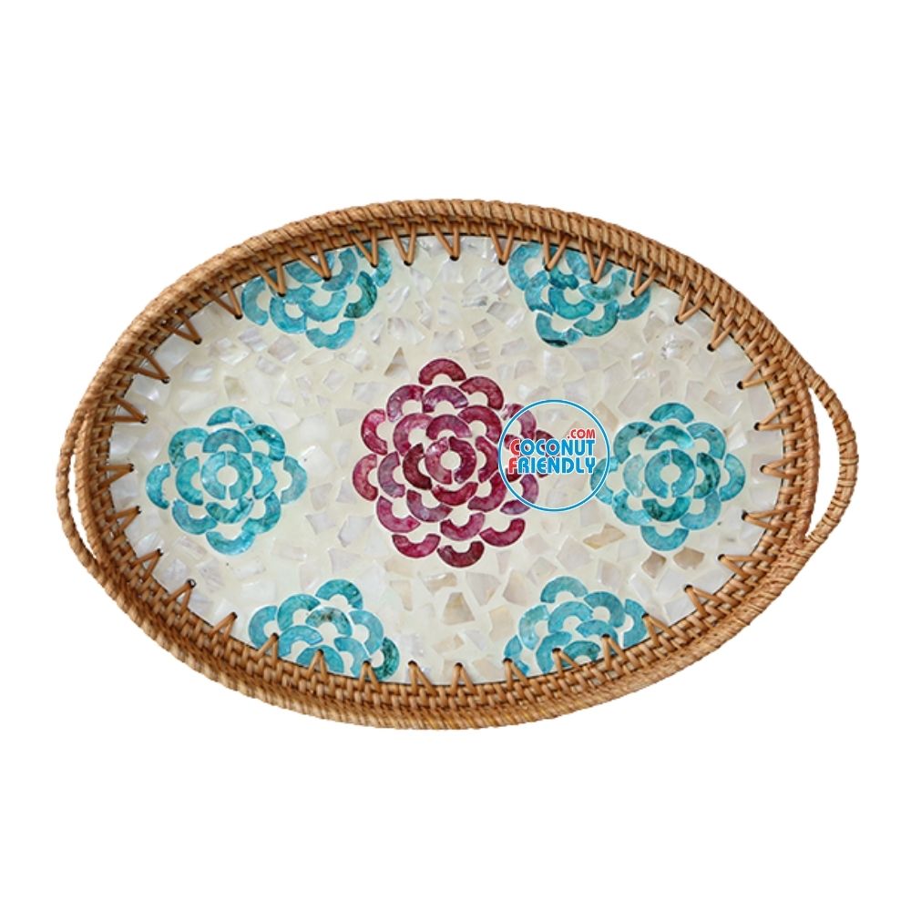 Refined Oval Mother of Pearl Rattan Tray For Curated Table Displays – TCRMT 8919C