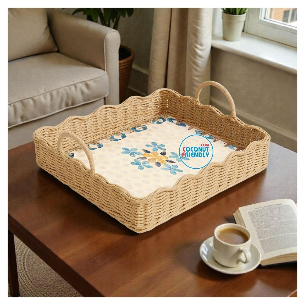 Statement Mother of Pearl Rattan Tray With Refined Aesthetics – TCRMT 8981C